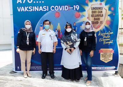 Padang Panjang – Berkolaborasi dengan Bank Rakyat Indonesia (BRI) Cabang Padang Panjang, Dinas Kesehatan (Dinkes) memberikan layanan vaksinasi dosis pertama dan kedua, di halaman kantor bank itu, Rabu (18/8). Sebanyak 68 orang mengikuti kegiatan vaksinasi tersebut.