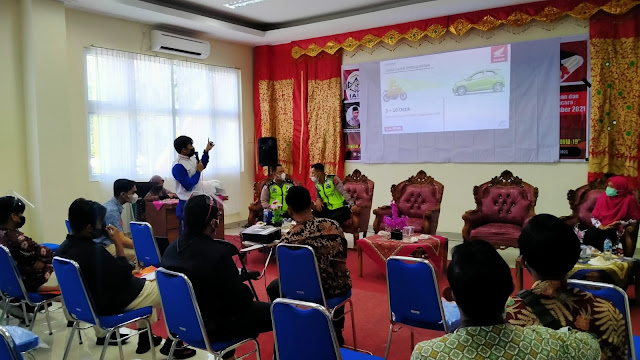 Seminar safety riding yang digelar Menara Agung menerapkan protokol kesehatan (prokes) secara ketat mengingat pandemi masih melanda Sumbar. Seminar ini juga dihadiri Satuan Lalulintas Polres Tanah Datar dan Psikolog Penyuluhan Keselamatan.