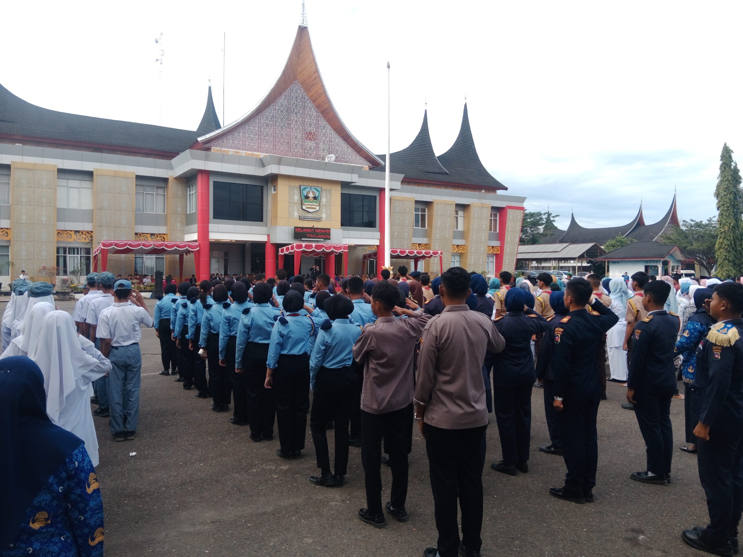 Dharmasraya, Fativa. Id — Bupati Dharmasraya Annisa Suci Ramadhani, S. H., LL. M., dukung dedikasi dan potensi dimiliki SMA Taruna Sumatera Barat. Sekolah menerapkan pendidikan berbasis semi militer itu, akan mampu melahirkan generasi cerdas, dan berkarakter. Hal ini disampaikan sesuai upacara peringatan Hari Pahlawan ke-80 dan Hari Kesehatan Nasional ke-61 secara serentak, di halaman kantor bupati setempat, Senin (10/11/2025).