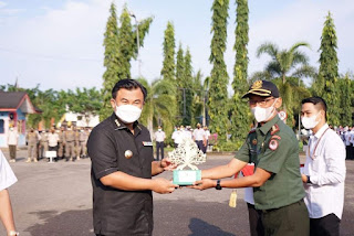 Penyerahan penghargaan ini dilaksanakan dalam kesempatan Apel Gabungan yang digelar di halaman Kantor Bupati Dharmasraya, Rabu (22/9/21).