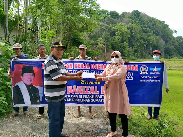 Painan – Kepedulian terhadap pengembangan sektor pertanian ditunjukkan Anggota DPR RI Fraksi Partai Demokrat Dapil 1 Sumatra Barat, H.Darizal Basir dalam bentuk bantuan dana kepada Kelompok Tani Gambir Indah Sejahtera Nagari Kapuh, Kecamatan Koto XI Tarusan, Kabupaten Pesisir Selatan. Dana itu akan digunakan untuk pembangunan jalan usaha tani.
