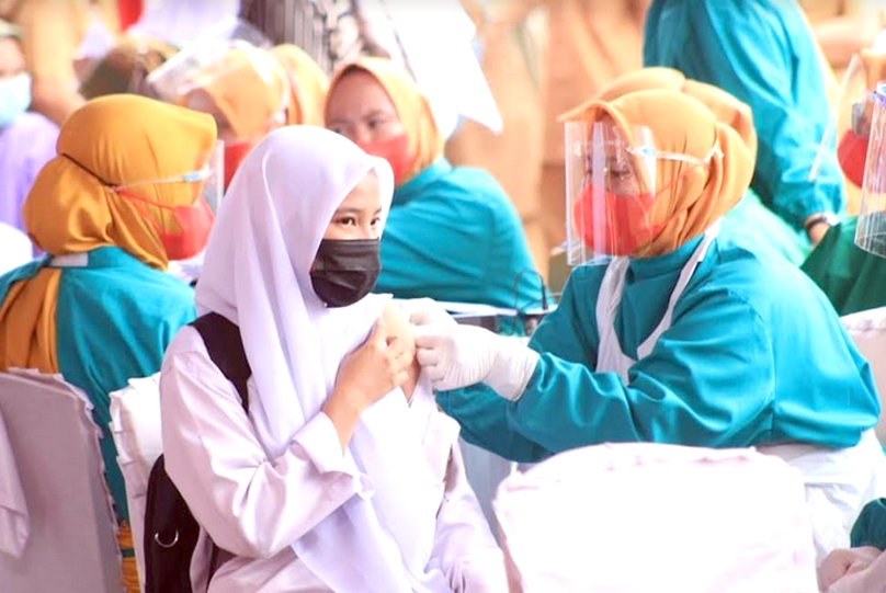 Dharmasraya – Ribuan pelajar di Kabupaten Dharmasraya mengikuti vaksinasi Covid-19 secara serentak, Senin (13/8). Vaksinasi pencegahan penyebaran Covid-19 yang dipusatkan di SMA Negeri 2 Pulau Punjung itu disaksikan langsung oleh Presiden RI Joko Widodo secara virtual.