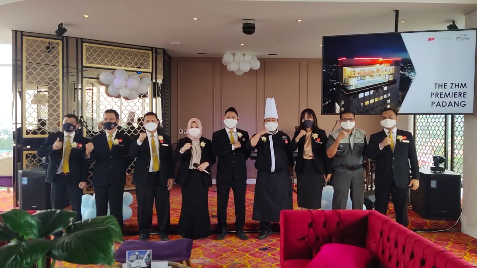 | GM The ZHM Premier Padang bersama tim saat launching Sky Lounge yang merupakan tertinggi di Sumbar. (ist) |