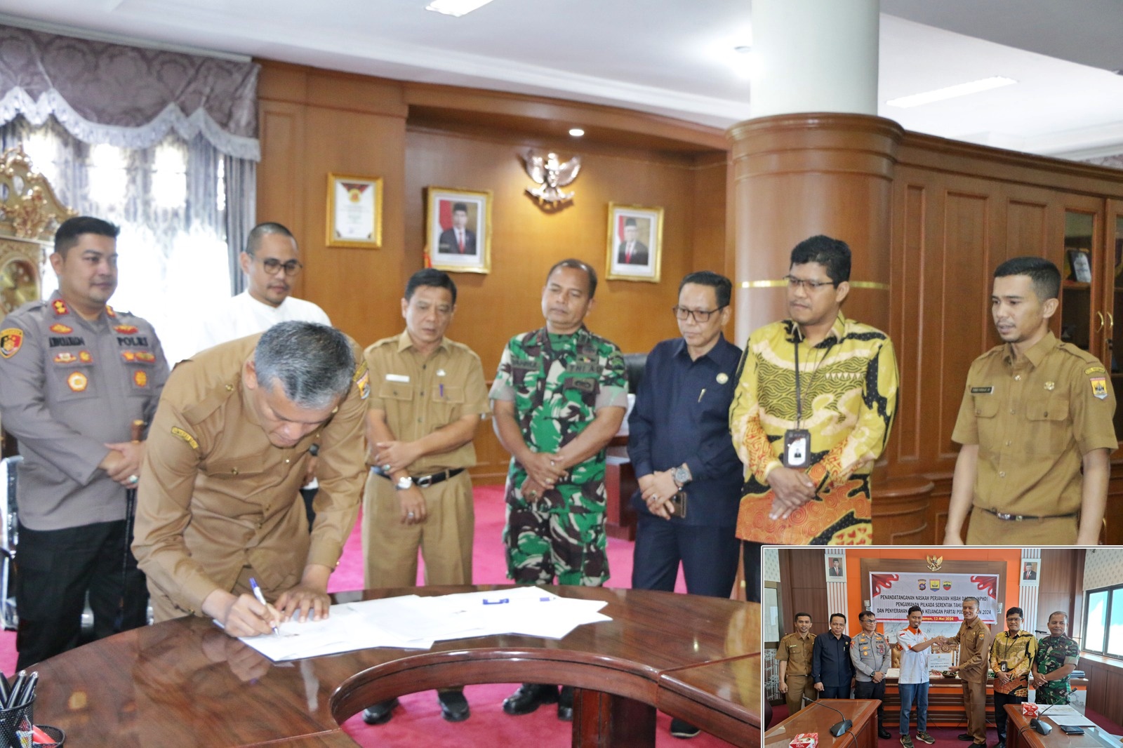 Kota Pariaman – Pemerintah Kota (Pemko) Pariaman fasilitasi dan lakukan Penandatanganan Naskah Perjanjian Hibah Daerah (NPHD) Pengamanan Pemilihan Kepala Daerah (Pilkada) serentak tahun 2024. Sekaligus penyerahan bantuan keuangan partai politik (Parpol) tahun 2024, di ruang rapat Wako Pariaman, Balaikota Pariaman, Senin (13/6/2024).