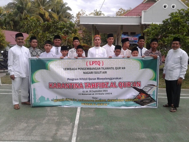 Arosuka – LPTQ Nagari Sulit Air, Kecamatan X Koto Diatas, Kabupaten Solok melakukan karantina terhadap santri tahfiz selama 30 hari. Hal ini dilakukan untuk memaksimalkan hafalan 12 santri Pondok Tahfiz.