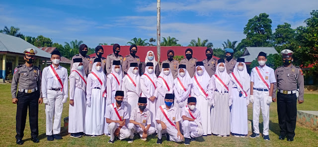 Dalam kunjungan tersebut, abdi negara ini juga menjadi Irup dalam upacara pagi di SMPN 04 Koto Baru, Senin (30/08 ). Kunjungan polwan ke sekolah tersebut dalam rangka sosialisasi tertip lalu lintas, bahaya narkoba, bagi-bagi masker plus memantau sejauh mana penerapan prokes di lingkungan sekolah yang dikunjungi.
