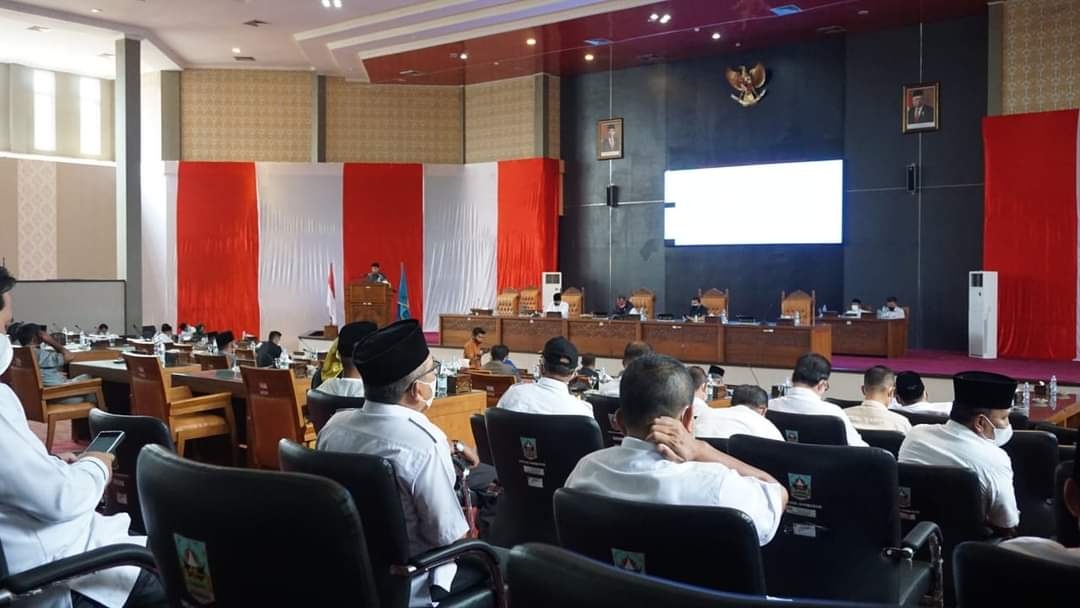 | Suasana Rapat Paripurna DPRD dalam rangka penyampaian pandangan umum fraksi terhadap Nota Penjelasan Rancangan Peraturan Daerah tentang Perubahan APBD Tahun Anggaran 2021, Rabu (25/8). (ist) |