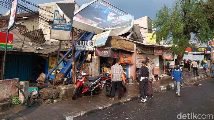 Hujan Angin Terjang Cimahi, Baliho Raksasa Roboh Timpa Warung