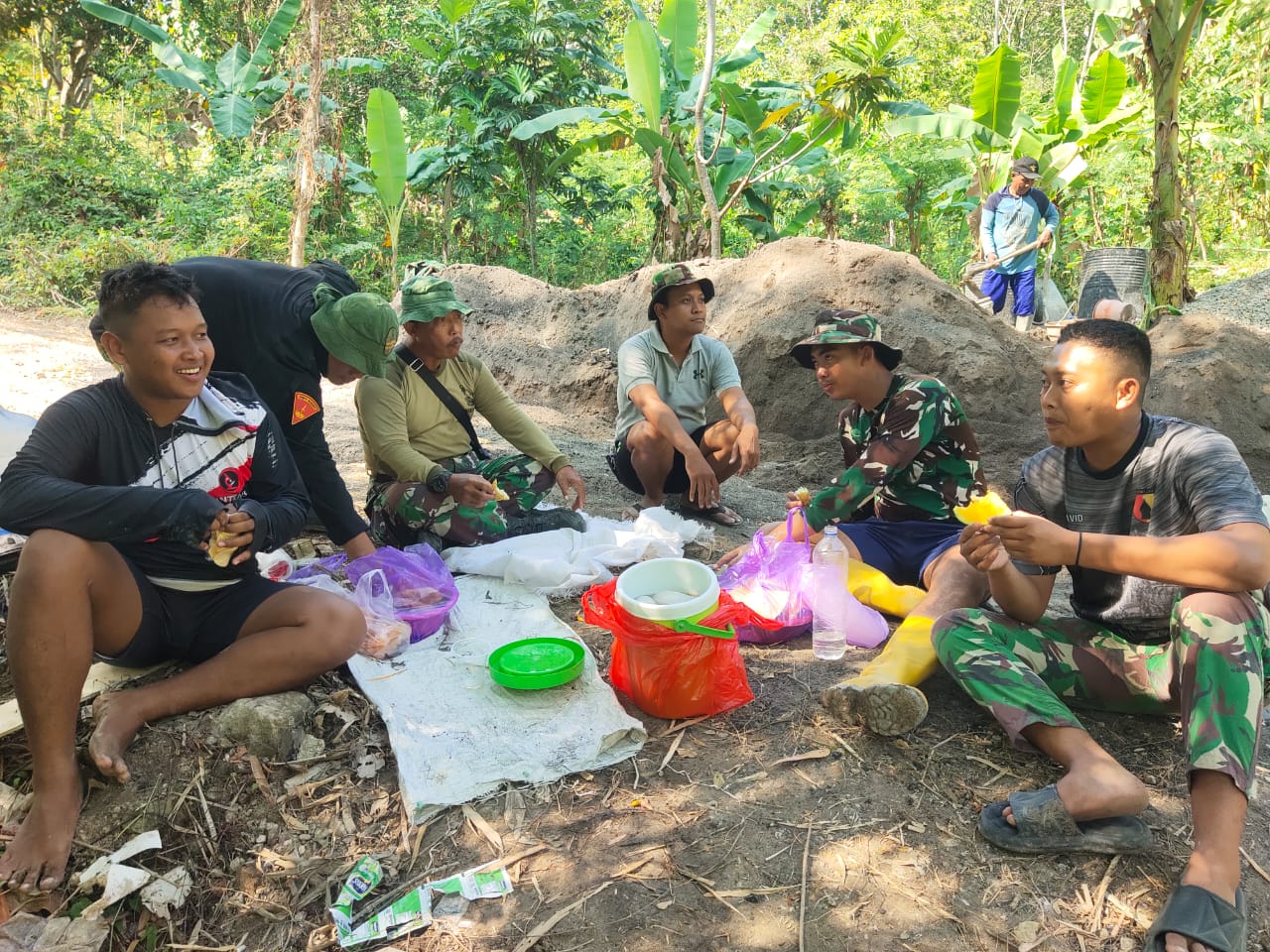 Beginilah Antusiasme Warga Dengan Satgas TMMD Kodim 0720 Rembang Di Selang Jam Istirahat