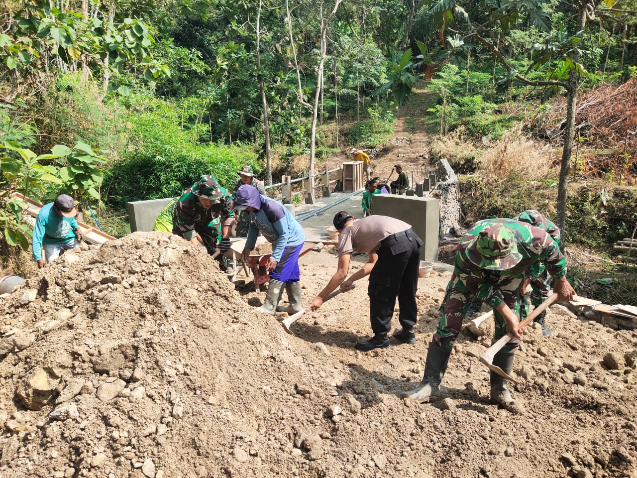 Danki Satgas TMMD Reguler ke- 121 Lettu Inf Jonarko mengatakan, di ujung jembatan TMMD yang saat ini selesai di pondasi dan selesai pengerjaan pengecoran, tanahnya belum rata dan masih membutuhkan urugan tanah yang lumayan banyak.
