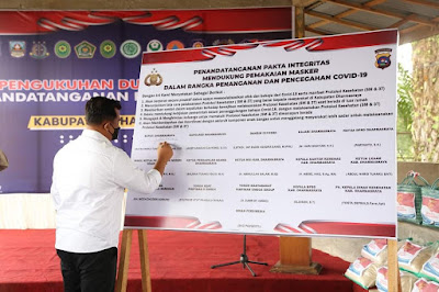 Penandatanganan Pakta Integritas ini dilaksanakan di Mapolres Dharmasraya dalam acara pengukuhan duta prokes.