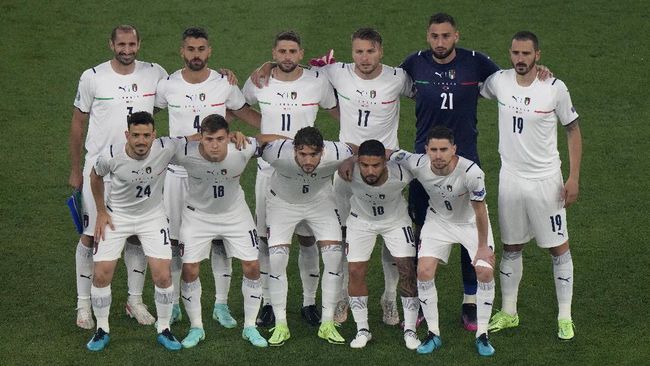 Italy (4-3-3): Gianluigi Donnarumma; Giovanni di Lorenzo, Leonardo Bonucci, Giorgio Chiellini, Leonardo Spinazzola; Nicolo Barella, Jorginho, Marco Verratti; Federico Chiesa, Ciro Immobile, Lorenzo Insigne.(*)