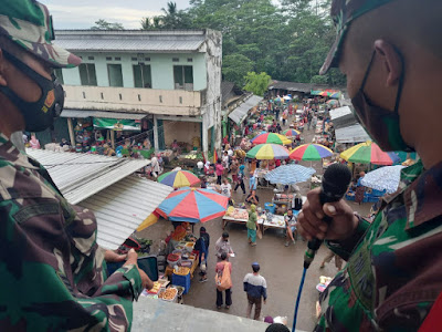 Serda Purwoko Adi menyampaikan bahwa Pentingnya Protokol Kesehatan di terapkan secara Ketat dan terus menerus karena pasar menjadi sasaran kerumunan warga yg hendak belanja untuk memenuhi kebutuhan sehari hari.