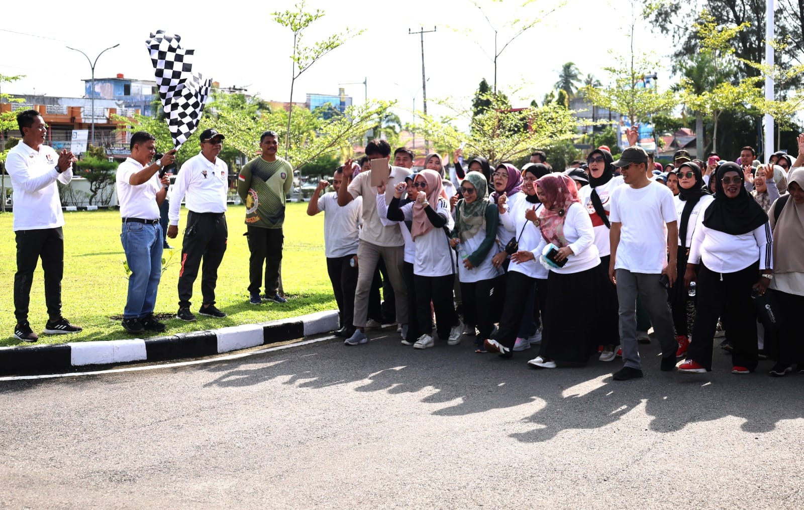 Peringatan hari jalan kaki sedunia dimulai dengan senam yang dilanjutkan dengan jalan bersama yang diikuti oleh seluruh Aparatul Sipil Negara (ASN) serta Kepala Desa dan jajaran di Kota Pariaman.