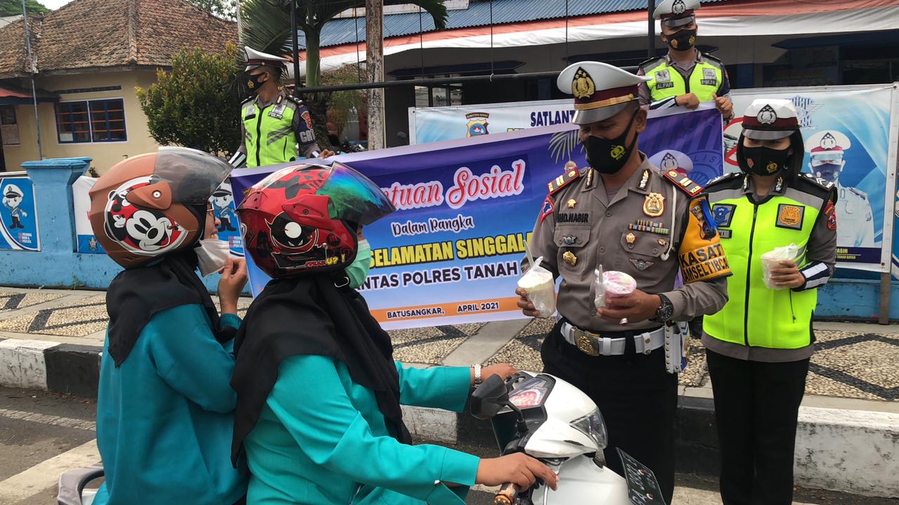 Tanah Datar – Dalam rangka Operasi Keselamatan Singgalang 2021, Satlantas Polres Tanah Datar melakukan giat bantuan sosial, berupa pembagian takjil untuk berbuka puasa kepada masyarakat yang melintas di depan kantor Satlantas jalan Suprapto Kampung Teleng, Kamis (22/4/21) sekira pukul 17.30 Wib.