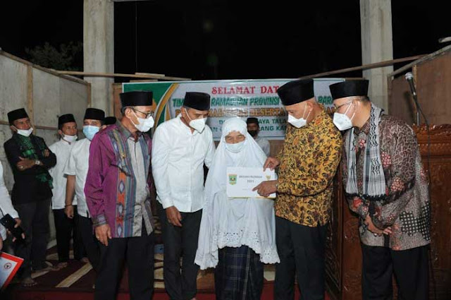 SOLOK-Tim Safari Ramadhan Pemerintah Provinsi Sumatera Barat kunjungi Masjid Raya Talang. Gubernur Mahyeldi serahkan bantuan 300 sak semen dari PT Semen Padang, Rp20 juta dari Bank Nagari dan Rp20 juta dari pemprov serta 20 Alquran dari Kemenag.