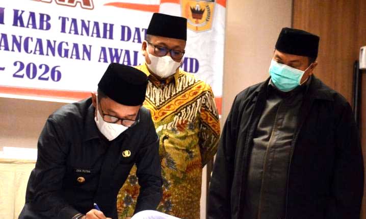 Bupati Eka Putra tandatangani rancangan awal RPJMD. (humas) |