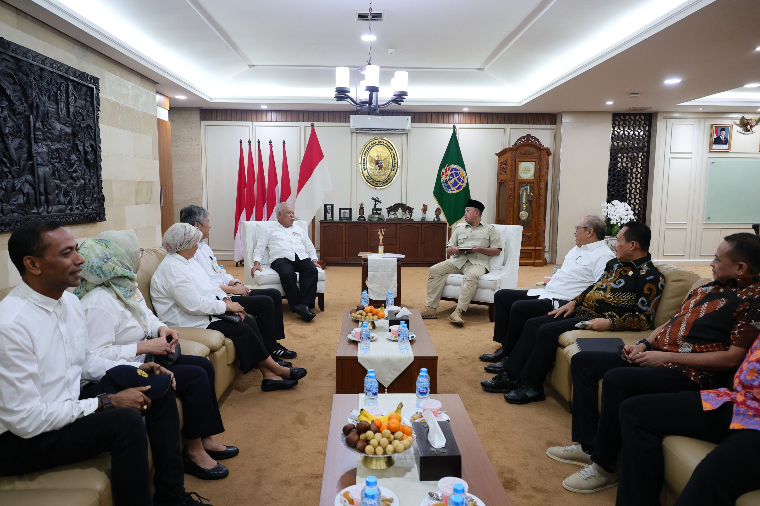 Turut serta dalam pertemuan ini, Sekretaris Jenderal Kementerian ATR/BPN, Suyus Windayana; Direktur Jenderal Penanganan Sengketa dan Konflik Pertanahan (PSKP), Iljas Tedjo Prijono; Direktur Jenderal Penetapan Hak dan Pendaftaran Tanah (PHPT), Asnaedi; serta Direktur Jenderal Survei dan Pemetaan Pertanahan dan Ruang (SPPR), Virgo Errsta Jaya. (MW/JR/NA)