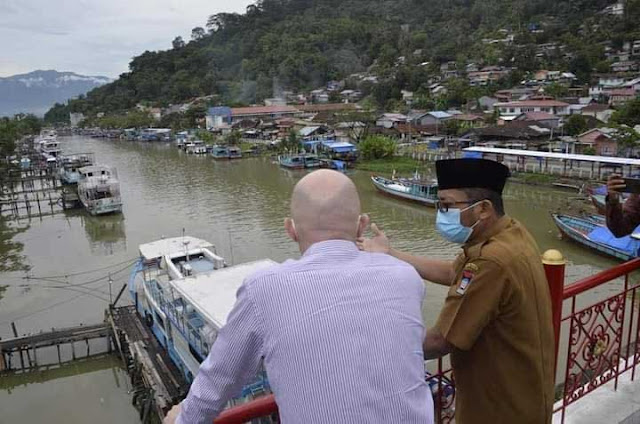 LIPUTANKINI.COM-Tenaga ahli dari GIZ-Jerman/Center for International Migration and Development (CIM), Michell Rohmann  tiba di Padang. Dia meninjau Batang Arau, Kelurahan Batang Arau, Padang Selatan, Senin (29/3/2021). Kedatangan Michell Rohmann disambut Plt Wali Kota Hendri Septa beserta jajaran.