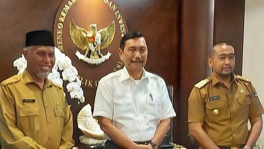 Gubernur Mahyeldi, Menko Marves Luhut Binsar, Wagub Audy Joinaldy bertemu di Jakarta, Senin (15/3/2021). |