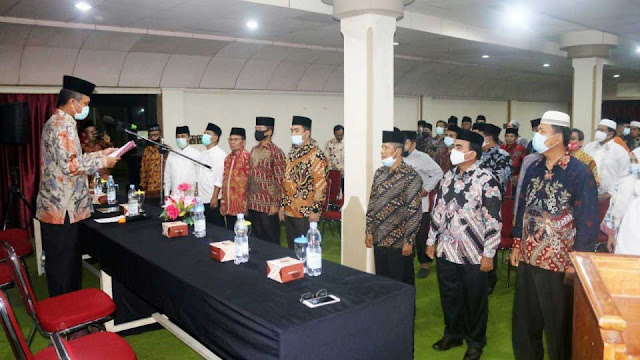 LIPUTANKINI.COM-Walikota Pariaman, Genius Umar kukuhkan pengurus Lembaga Pendidikan dan Pengembangan Tilawatil Quran (LPPTQ) periode 2021-2024 di Nantongga Hotel, Sabtu (13/3).Pengukuhan dihadiri oleh Sekda Ahmad Zakri, para kepala OPD, Ketua TP-PKK dan Kepala Kantor Kementerian Agama.