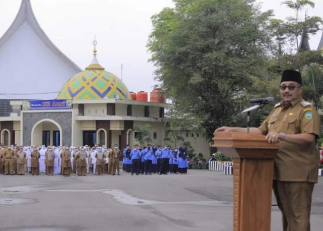Bupati Benny pimpin apel perdana yang diikuti kalangan ASN Pasaman. |
