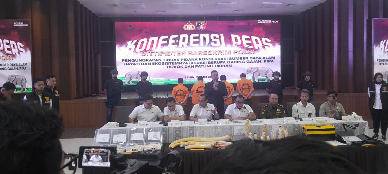 JAKARTA, Fativa.id JacindoNews – Senin (26/05/2025), bertempat di Lantai 9 Bareskrim POLRI, diadakan Konferensi Pers mengenai Pengungkapan tindak pidana konservasi sumber daya akan hayati dan ekosistem (KSDE) berupa Gading Gajah, Pipa Rokok dan Patung Ukurin.