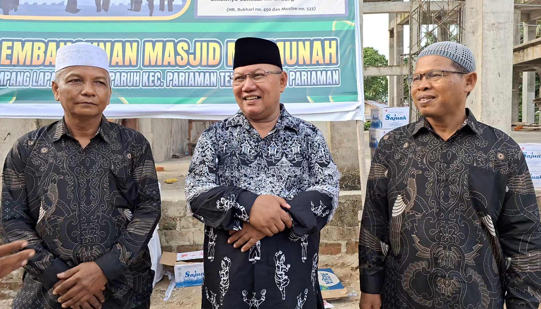 Masrul dan H. Safinal SKB, Ketua pembangunan dan pengurus, menyebutkan, hari baik, cuaca mendukung, sehingga semua undangan hadir dengan antusias.