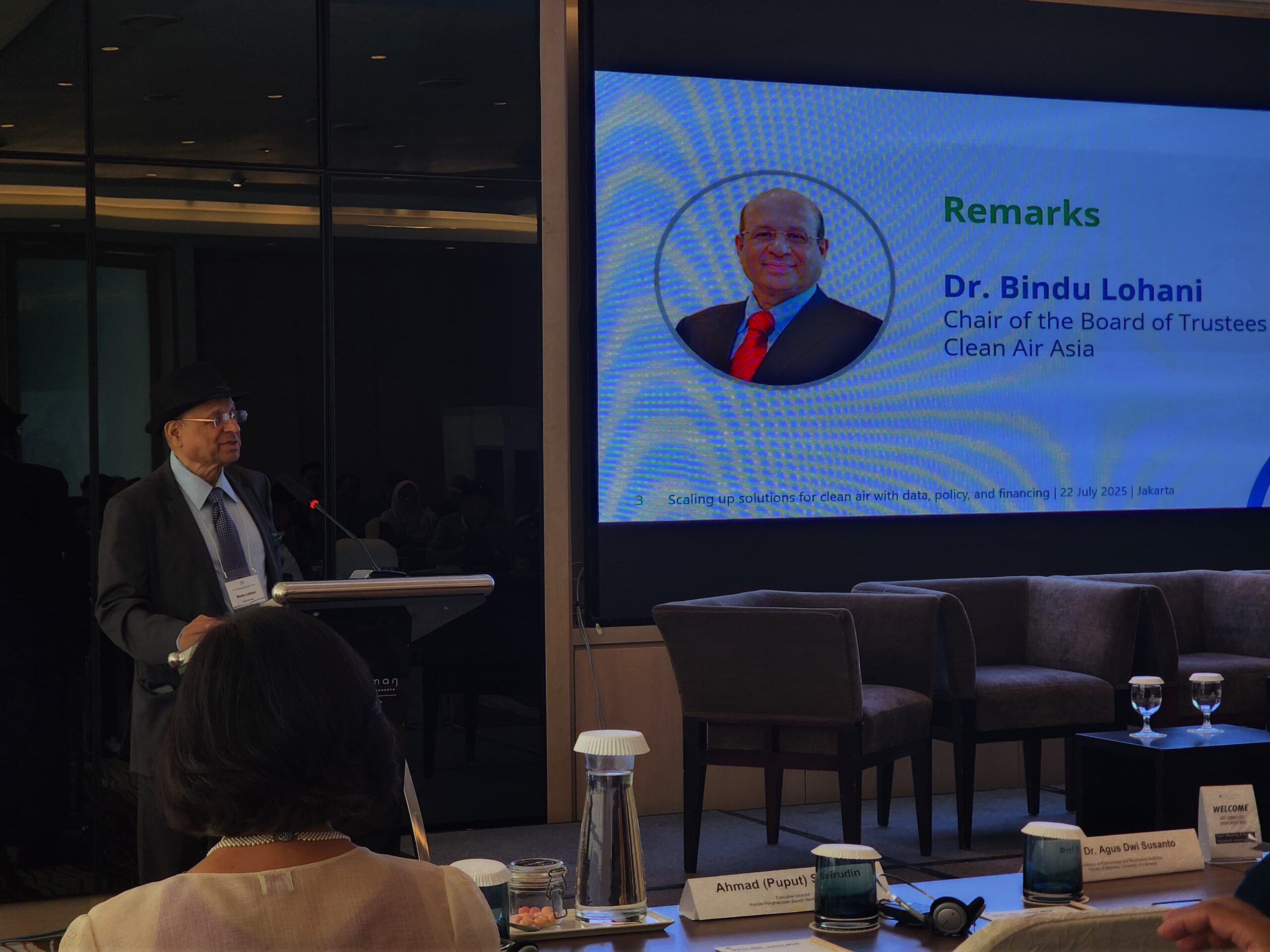 Ketua Board of Trustee Clean Air Asia, Bindu Lohani, dalam sambutannya menekankan bahwa kualitas udara Jakarta bukan hanya soal isu lingkungan, tetapi juga soal kesehatan publik dan stabilitas ekonomi di wilayah urban.
