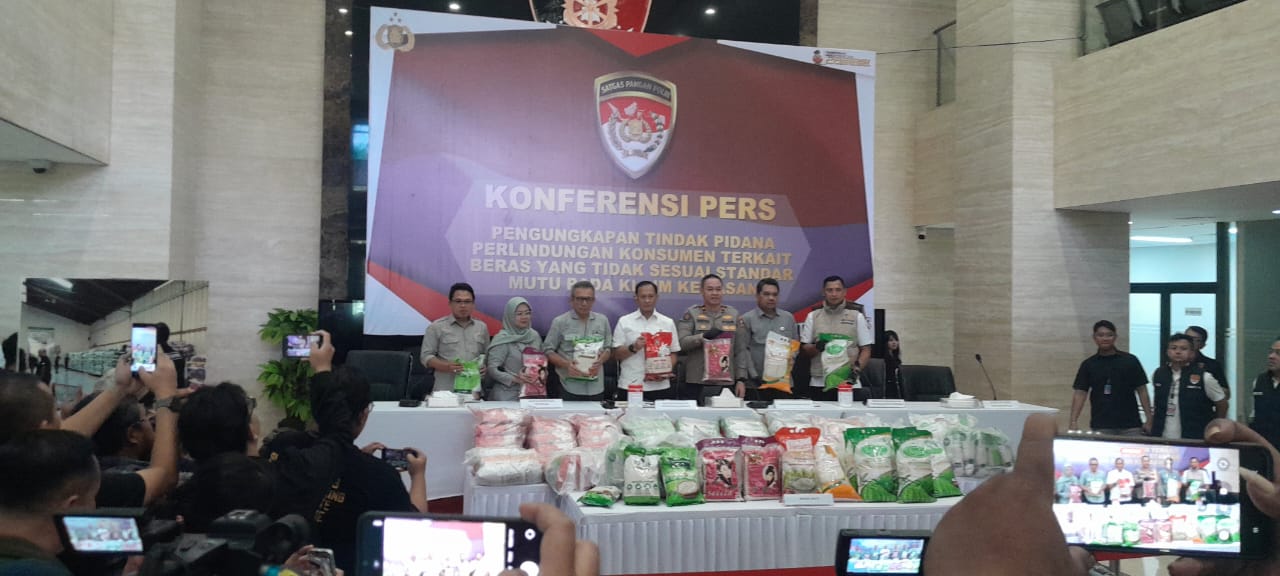 24 Juli 2025 — Kepolisian Negara Republik Indonesia (Polri) berhasil mengungkap praktik produksi dan peredaran beras premium yang tidak sesuai standar. Dalam konferensi pers yang digelar, pihak kepolisian menjelaskan telah dilakukan sejumlah tindakan hukum terhadap para produsen, termasuk penyegelan gudang, penyitaan barang bukti, serta pemeriksaan laboratorium terhadap sampel beras dari berbagai merek.