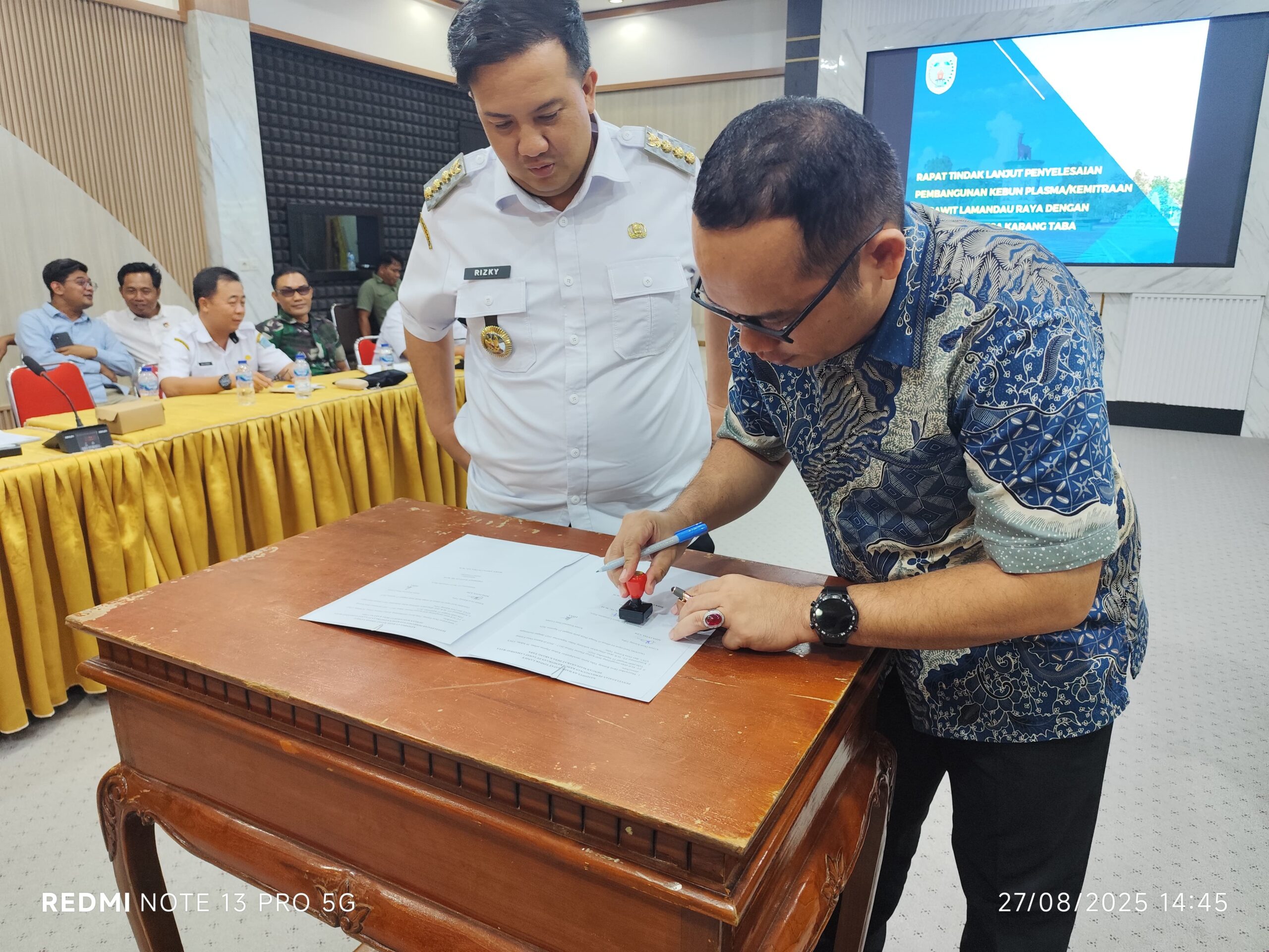 Dalam kegiatan tersebut hadir Ketua Dewan Adat Dayak (DAD) Kecamatan Lamandau, Rudi Sea, Damang Kepala Adat Kecamatan Lamandau Paulus Redan C Kunjan, Damang kepala Adat Kecamatan Delang Albartos Popo, pengurus koperasi, tokoh adat, serta perwakilan masyarakat. Kehadiran Bupati Rizky Aditya Putra sebagai fasilitator utama dinilai mampu menciptakan suasana musyawarah yang kondusif sehingga menghasilkan kesepakatan bersama yang berpihak kepada masyarakat.