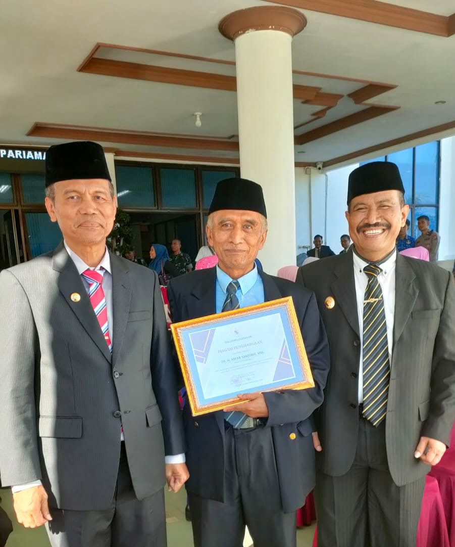 Kota Pariaman – DR.H.Asfar Amir, MM (61) salah seorang Praktisi Pendidikan Provinsi Sumatera Barat (Sumbar) terima Piagam Penghargaan “Peduli Pendidikan” dari Walikota Pariaman Genius Umar.
