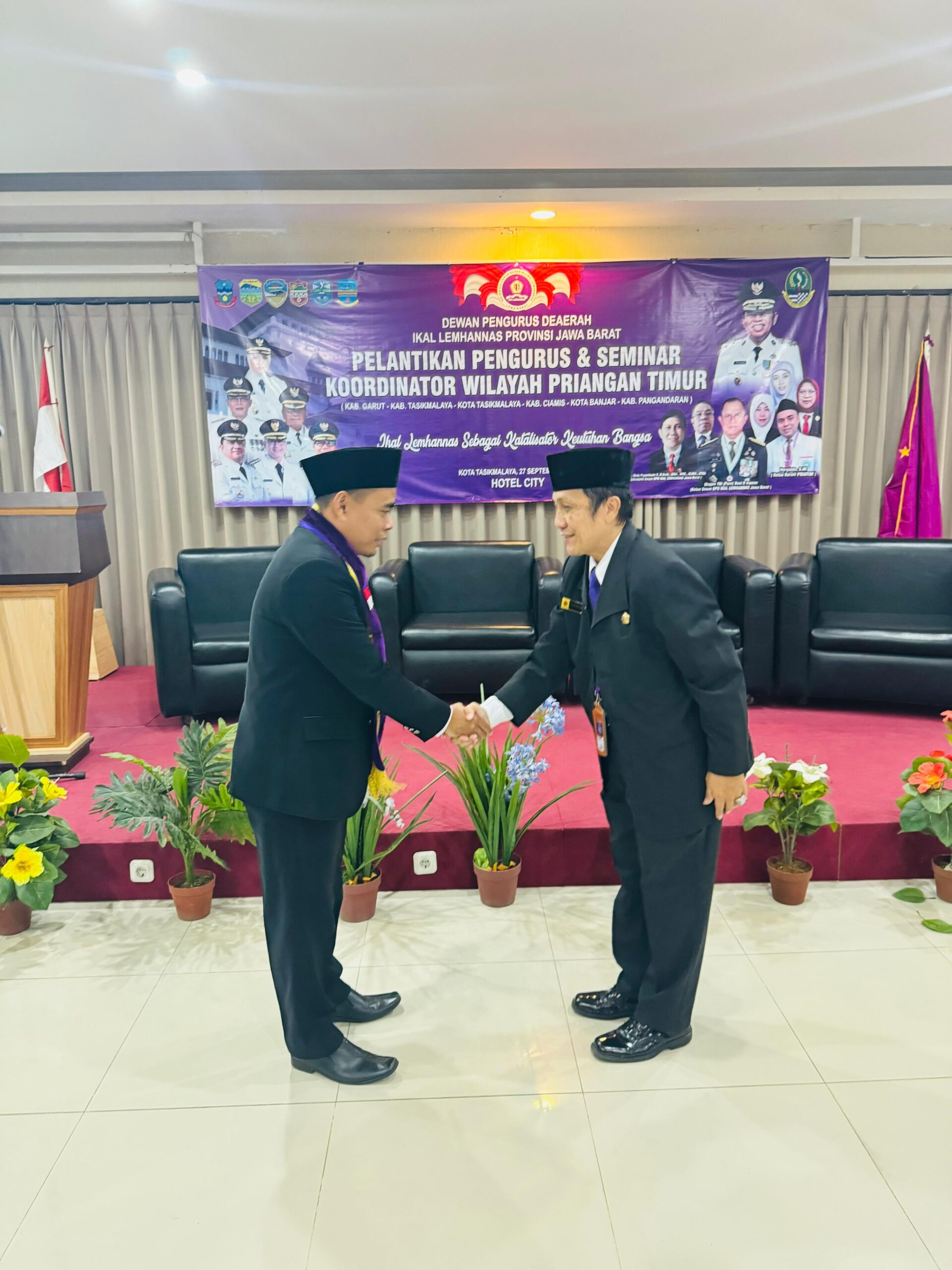 Kota Tasikmalaya*l, Fativa.id,- Sekretaris Umum DPD IKAL Lemhannas Jabar Dr.Ir.Redy Pryambada melantik Kordinator Priangan Timur DPD IKAL Lemhannas H.Heryanto,S.HI dan jajaran mewakili Ketua DPD IKAL Lemhannas Jabar yang berhalangan hadir, Sembada Room City Hotel, Sabtu( 27/9/25).