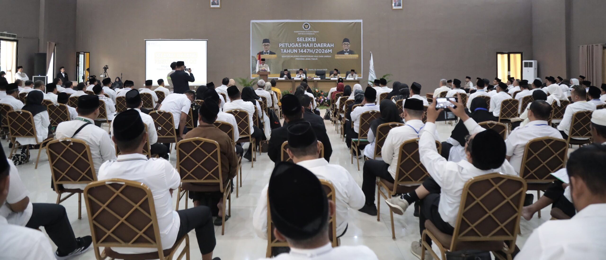 “Tidak ada ruang bagi titipan, intervensi, atau kompromi terhadap integritas,” tegasnya saat membuka seleksi di Asrama Haji Embarkasi Sukolilo, Surabaya, Kamis (22/1/2026).