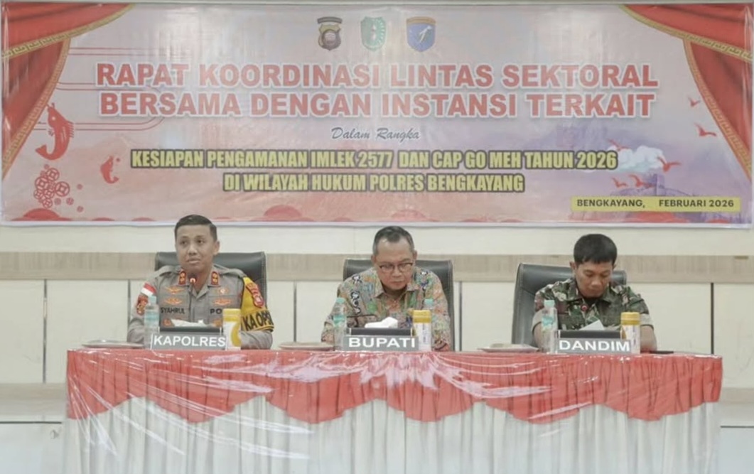 Bengkayang – Untuk memastikan perayaan Hari Raya Imlek 2577 dan Cap Go Meh Tahun 2026 berjalan aman, tertib, dan kondusif, Polres Bengkayang menggelar Rapat Koordinasi (Rakor) Lintas Sektoral bersama unsur Forkopimda dan instansi terkait, Kamis (12/2/2026) pagi, di Aula Tunggal Panaluan Polres Bengkayang.