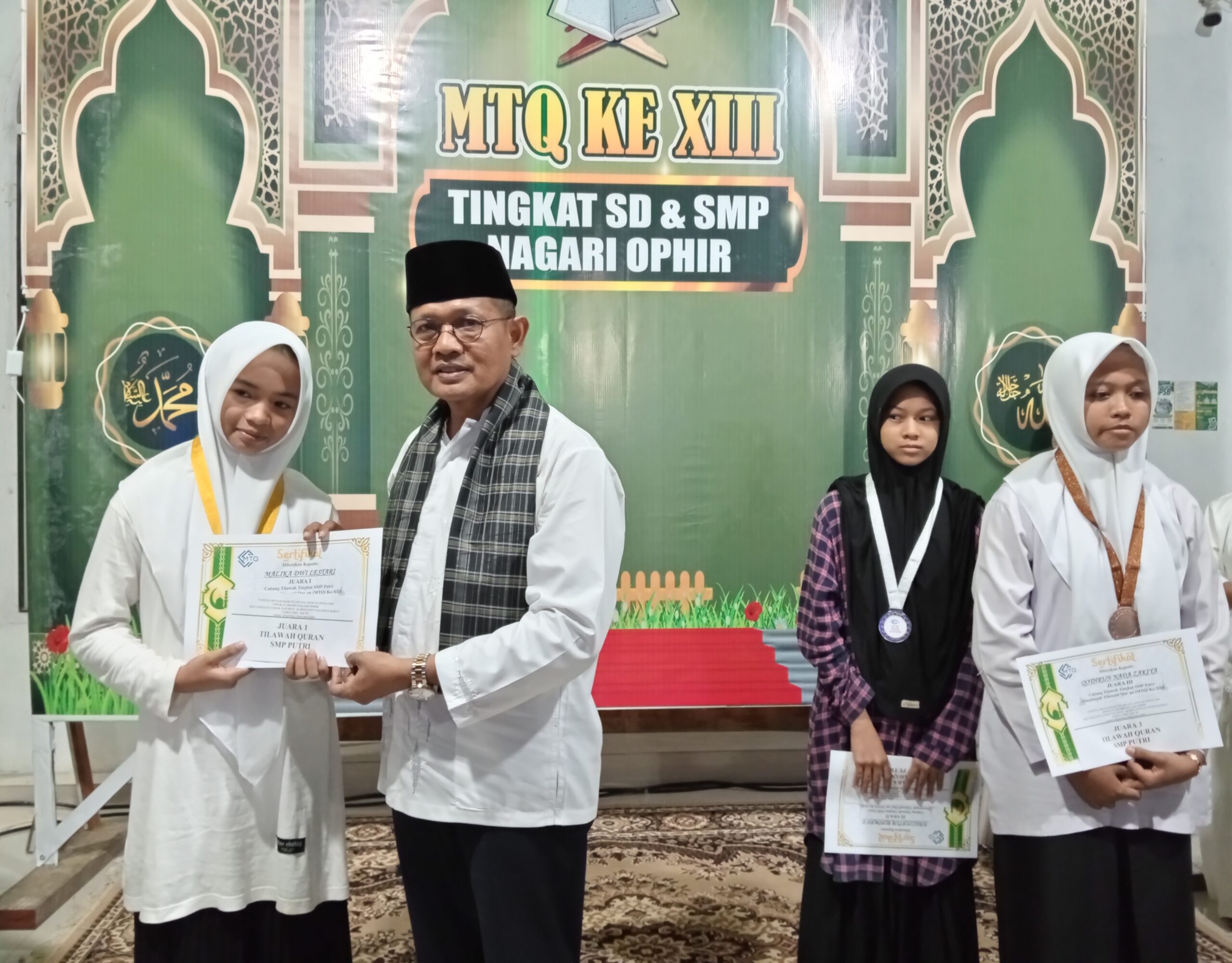 “Saya sangat apreasiasi kepada seluruh peserta yang telah menampilkan semua kemampuannya di ajang MTQ ke XIII tahun 2026 tingkat SD dan SMP se-Nagari Ophir,” ungkapnya.