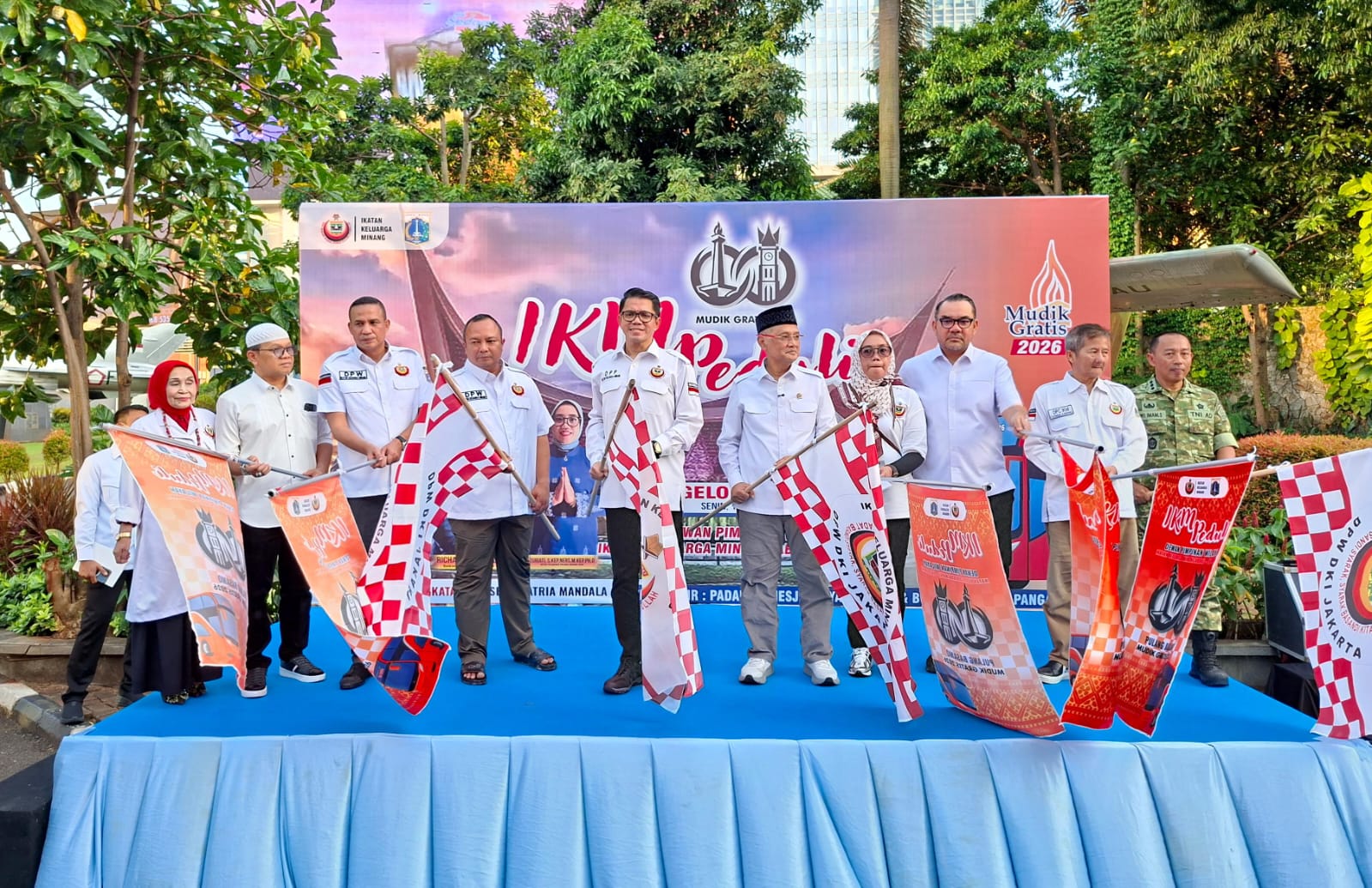 Jakarta – Dewan Pimpinan Wilayah (DPW) Ikatan Keluarga Minangkabau (IKM) DKI Jakarta menggelar program Mudik Gratis 2026 yang berlangsung di kawasan Museum Satria Mandala, Senin (16/3/2026).
