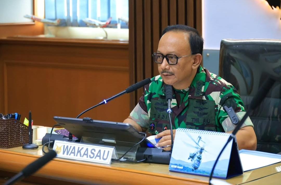 Jakarta – Wakil Kepala Staf Angkatan Udara (Wakasau) Marsdya TNI Tedi Rizalihadi menerima laporan akhir kegiatan Latihan Uji Kesiapan Operasional Satuan Tentara Nasional Indonesia Angkatan Udara Tahun 2025 di Ruang Rapat Wakasau, Mabesau Cilangkap, Jakarta Timur, Senin (16/3/2026). Kegiatan ini menjadi bagian dari upaya TNI AU dalam memperkuat kesiapan operasional satuan melalui evaluasi menyeluruh dan objektif guna menghadapi tuntutan tugas yang semakin kompleks.
