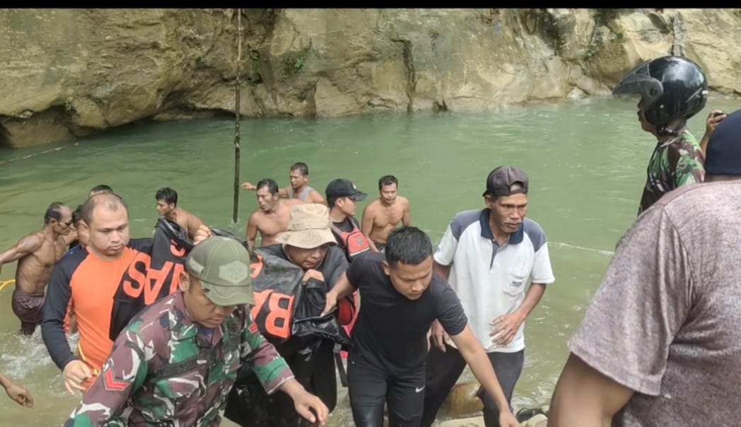 Pencarian terhadap korban melibatkan tim SAR gabungan yang terdiri dari personel Basarnas Pos Pasaman, BPBD Pasaman Barat, TNI dan Polri, serta dibantu oleh masyarakat setempat. (Wisnu)