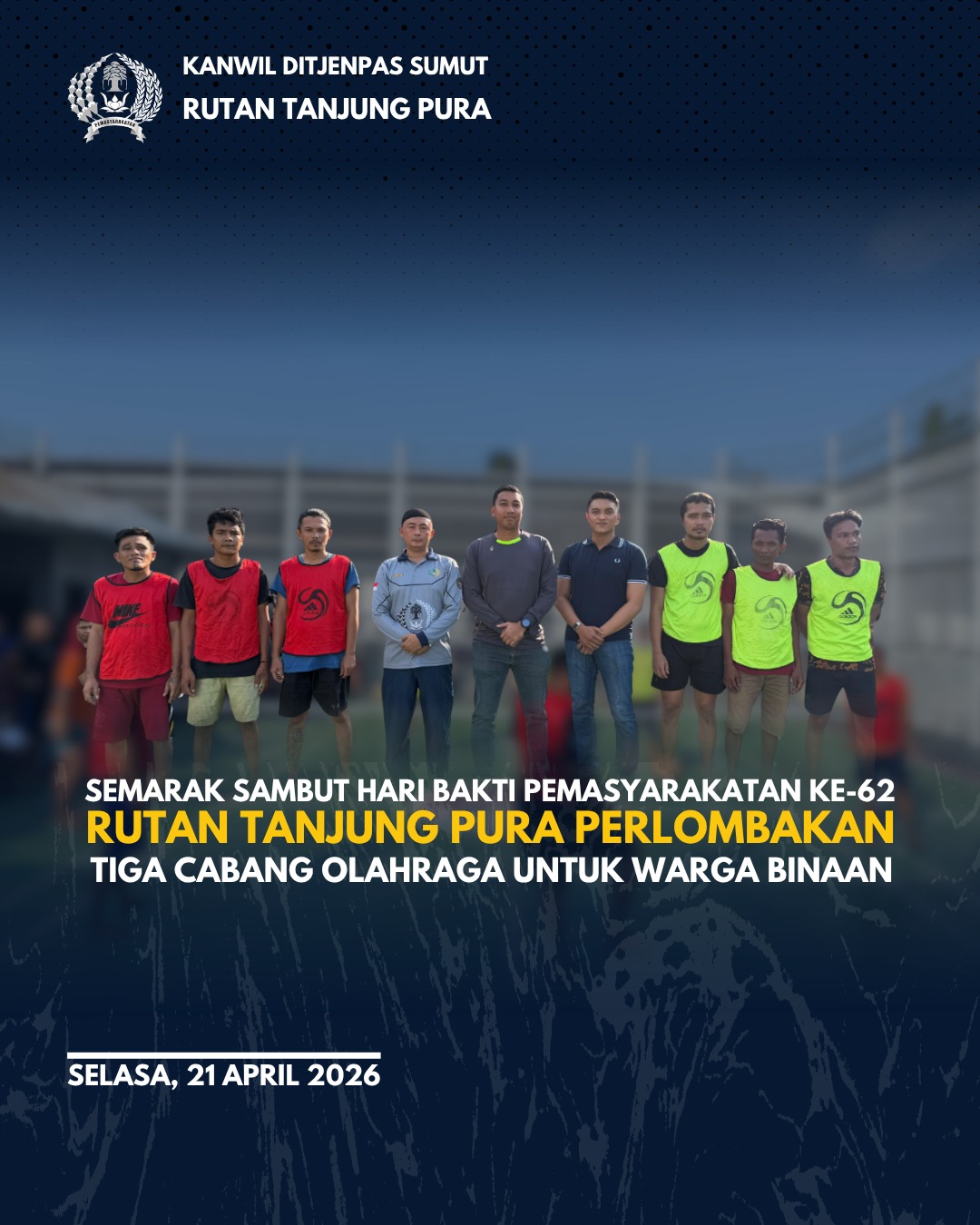 Tanjung Pura, Fativa.id,— Dalam rangka memperingati Hari Bakti Pemasyarakatan (HBP) ke-62 Tahun 2026, Rumah Tahanan Negara (Rutan) Kelas IIB Tanjung Pura menggelar Pekan Olahraga Warga Binaan. Kegiatan ini mengusung tema “Pemasyarakatan Kerja Nyata Pelayanan Prima”.