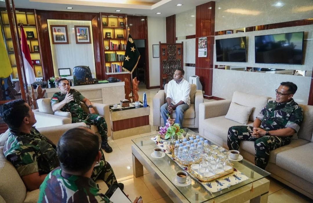 Jayapura – Panglima Kodam (Pangdam) XVII/Cenderawasih, Mayjen TNI Febriel Buyung Sikumbang, menegaskan komitmennya dalam mendorong pembangunan Papua agar semakin maju dan setara dengan daerah lain di Indonesia. Hal tersebut tercermin dalam pertemuan bersama tokoh muda Papua, Yoel Swabra, yang berlangsung di ruang kerja Pangdam pada Kamis (23/4/2026).