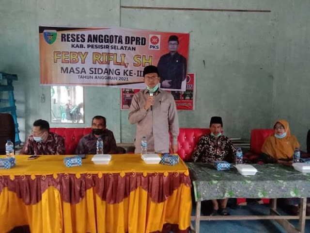 Painan – Pada masa sidang III tahun 2021, Feby Rifli, Anggota DPRD Kabupaten Pesisir Selatan Fraksi Partai Keadilan Sejahtera melakukan kegiatan reses ke daerah pemilihan (Dapil) bertempat di Gedung Serba Guna Kecamatan Batang Kapas, Ming gu (3/10).
